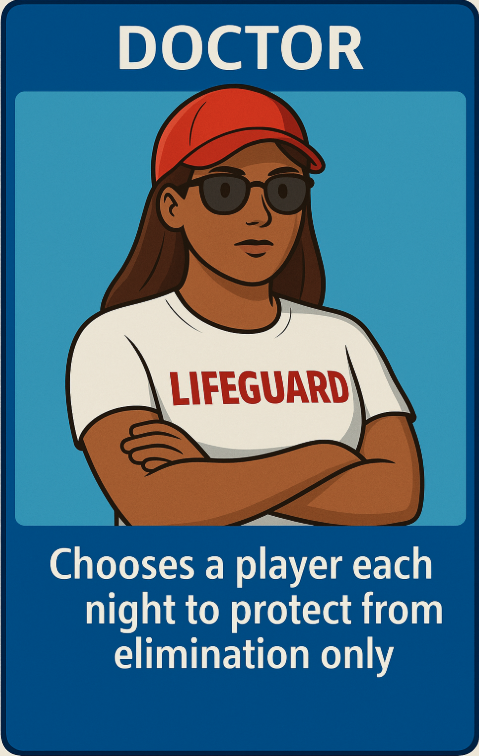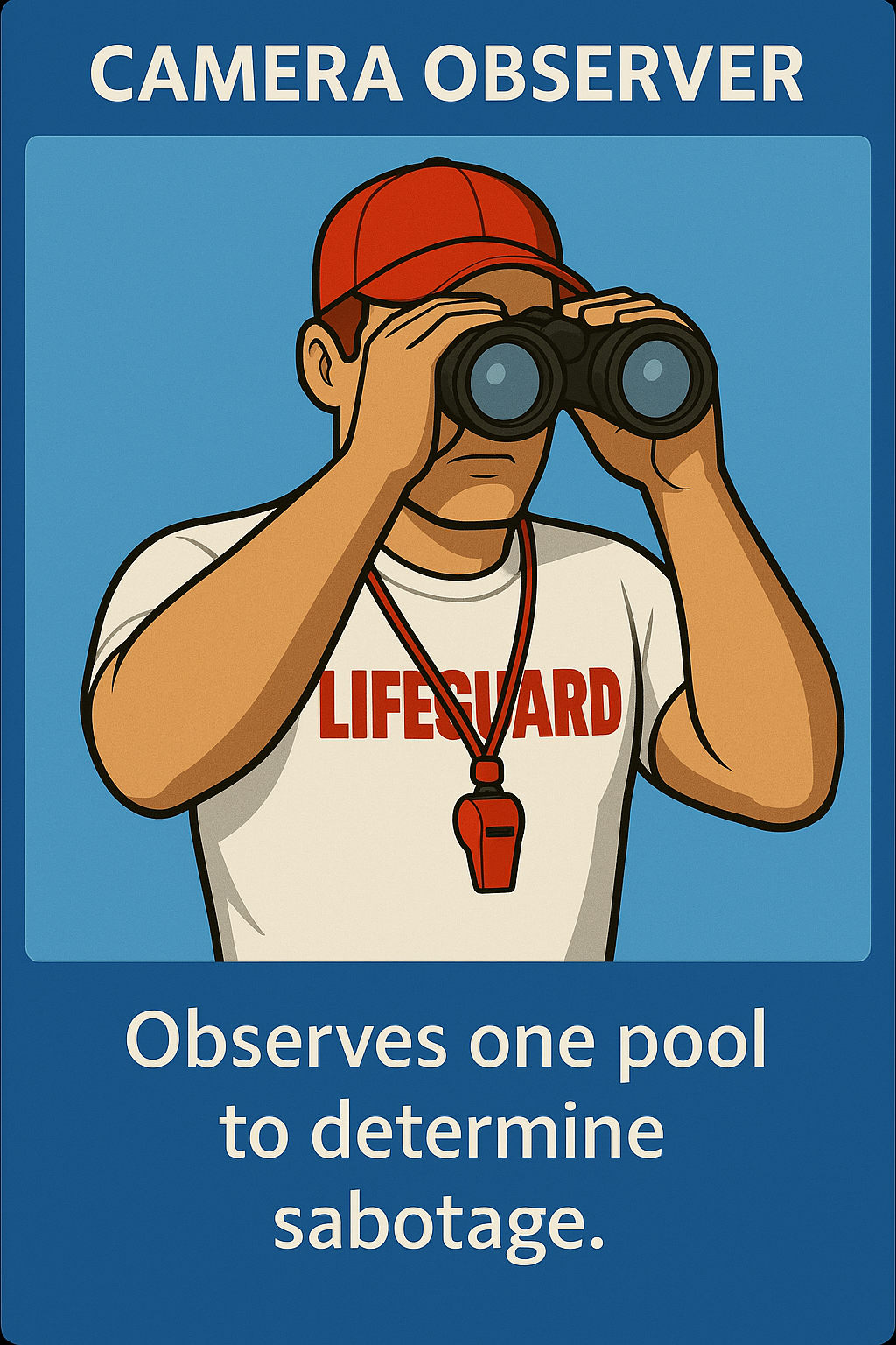 A thrilling social deduction game where teamwork and cunning decide the fate of the pool! Players are secretly divided into Lifeguards and Patrons, each with unique abilities and objectives.