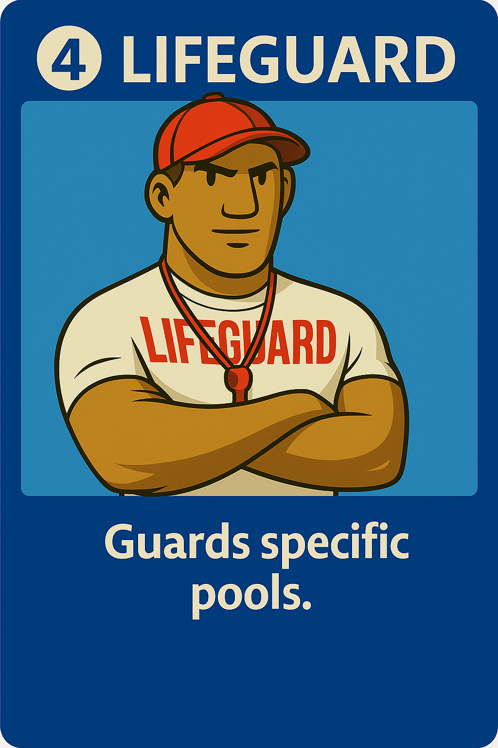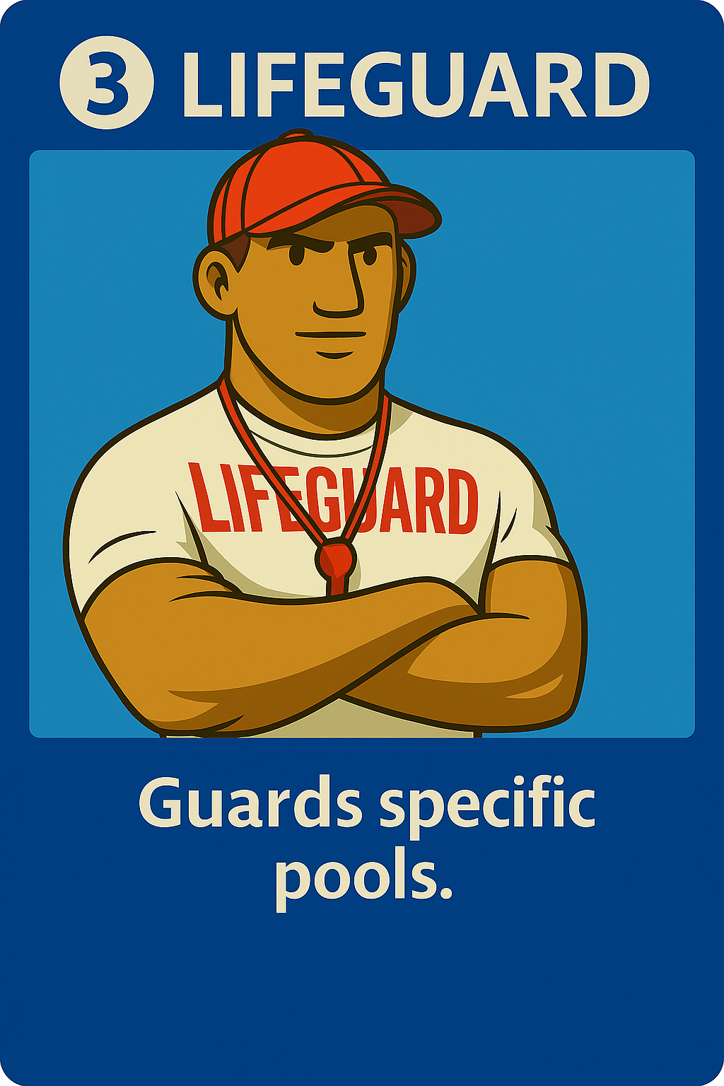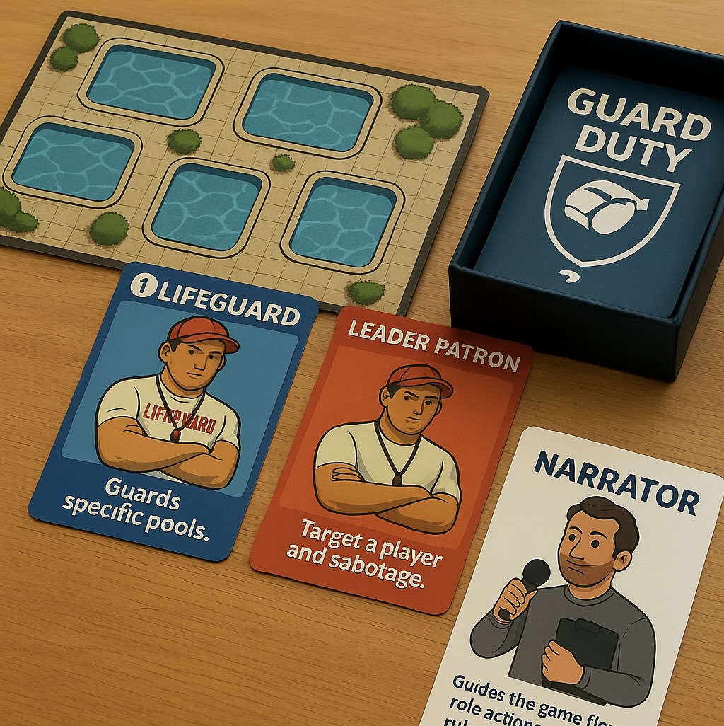 Guard Duty: Lifeguards vs. Patrons was inspired by the classic social deduction game Werewolf and the chaotic energy of a busy summer pool. It combines hidden roles and day-night phases from Werewolf with the unique tension of pool operations, creating an experience where deception and strategy meet the playful setting of lifeguards protecting a public pool from saboteurs.